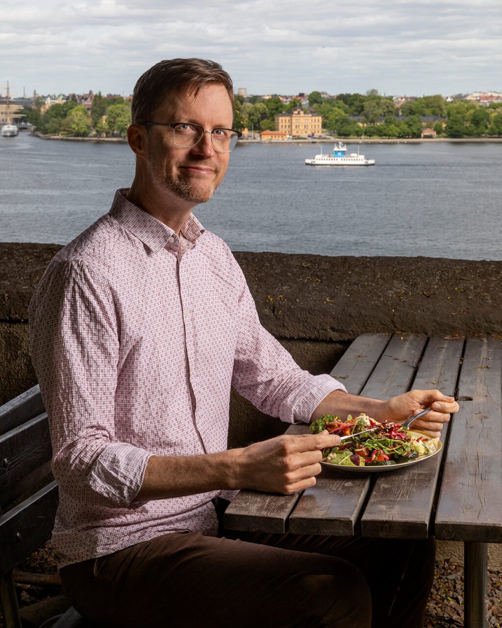 Med tjusig utsikt över det grönskande Stockholm pratar vi om kostens kraft, som även är namnet på hans första bok.