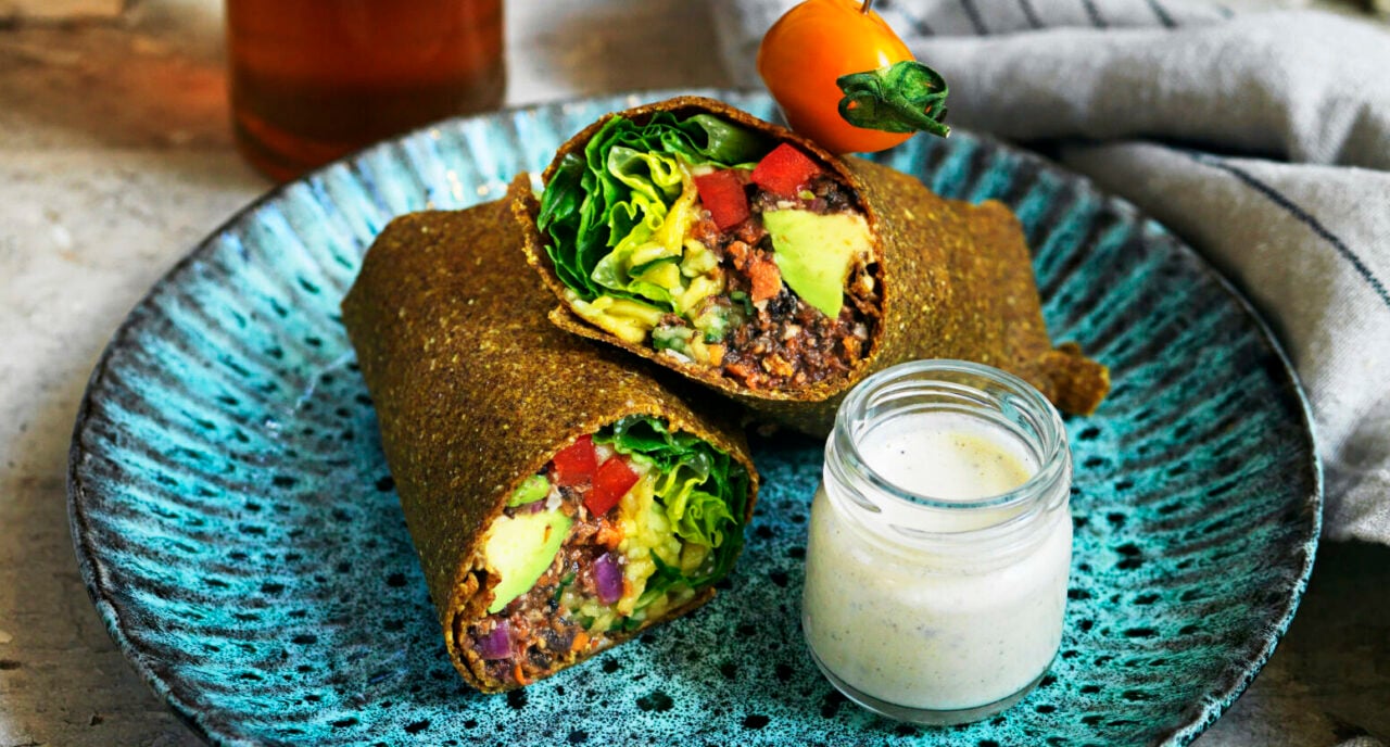 Fantastiskt goda och matiga wraps med svampfärs, sallad och krispiga grönsaker.