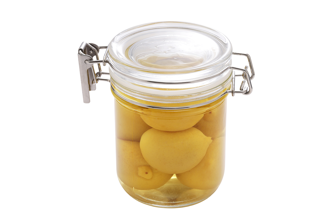 Citron confit används flitigt i det marockanska köket och är en fantastisk smaksättare. Citronerna läggs oftast in på våren och då av en sort som kallas boussera som sakta confiteras i en lag med salt. Det tar bort syran och gör citronerna oslagbara att använda med kyckling, lök och potatis i en gryta som är vanlig i Marocko. Prova att skära ner en citron i mindre bitar och blanda med svarta oliver och hackad persilja. Tänk på att citronerna har mycket smak, prova dig fram. Finns att köpa i välsorterade butiker med orientaliskt utbud.