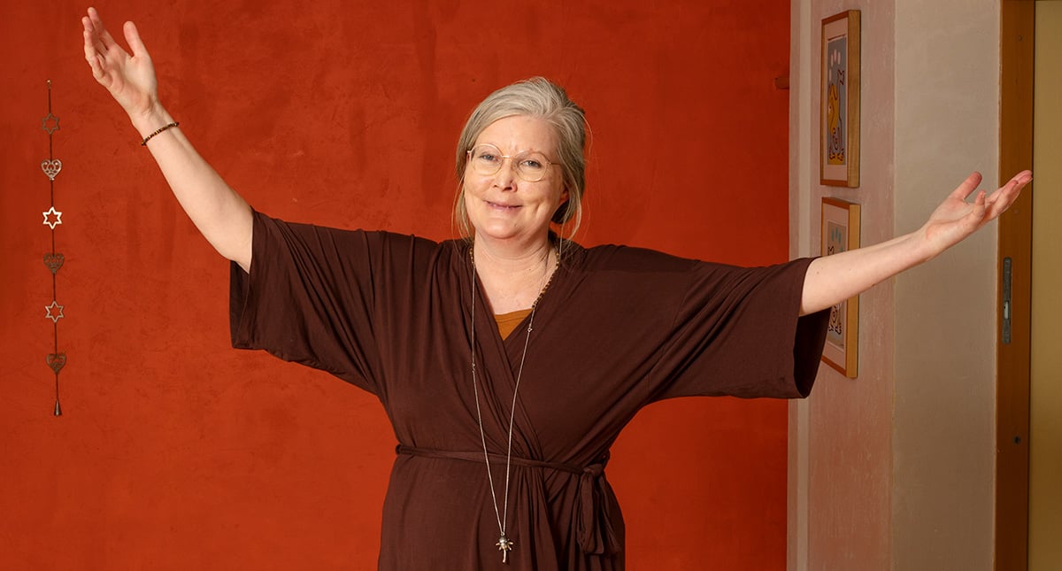 — Idag är jag smärtfri. Jag har gått en reikikurs, jag rider islandshästar, jag dansar ” body and soul movement” och ”dance in nature” — dans i grupp ute i naturen. Vi har ”silent discolurar” på öronen med musik, och jag försöker förlåta och älska mig själv. Det är en process att visa mig mer självmedkänsla.