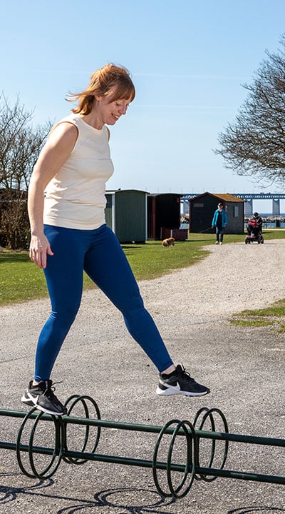 ”Ska jag verkligen…?” Ja, det ska du! Det roligaste med tantparkour är att tänja på sina egna gränser och känna att man klarar det.