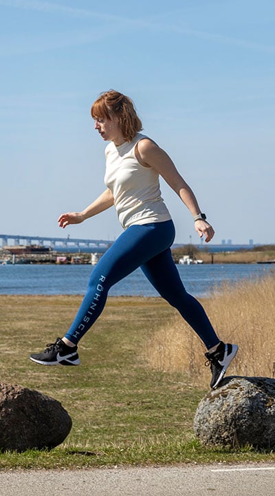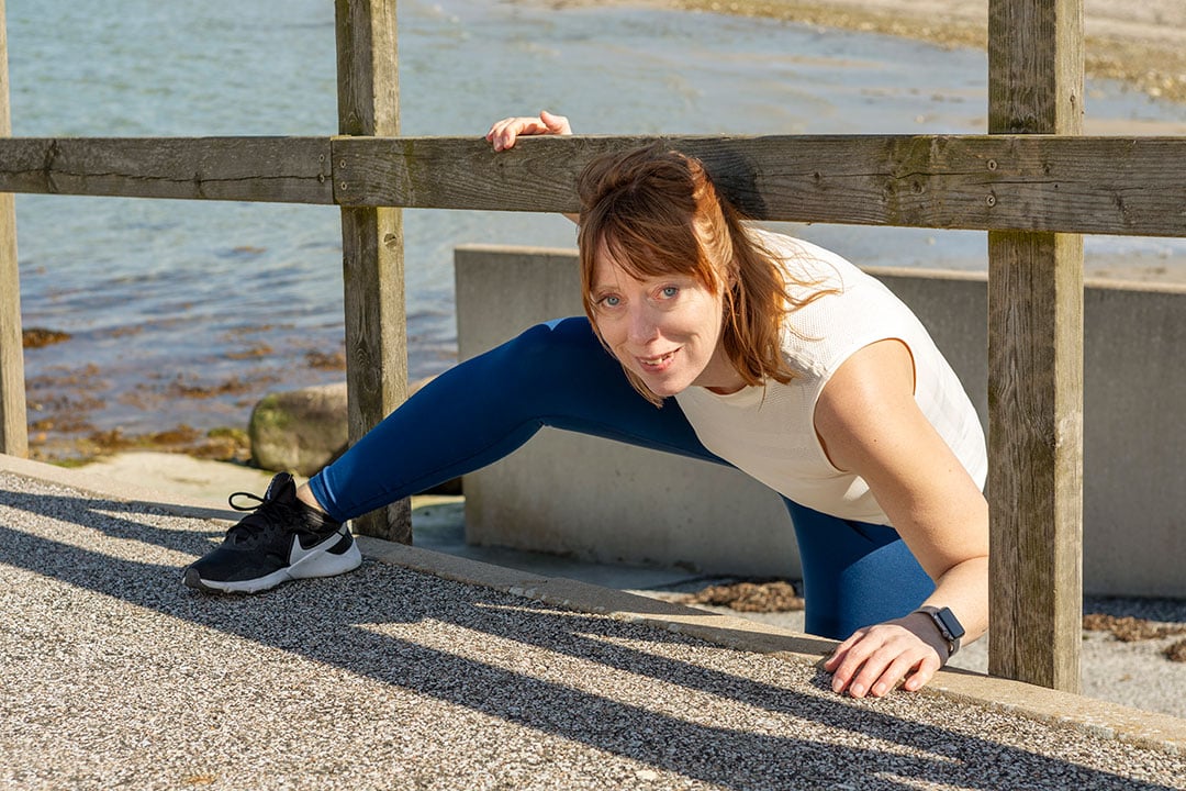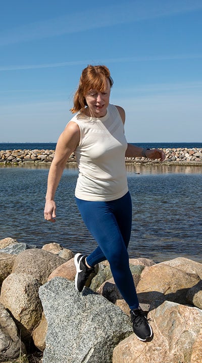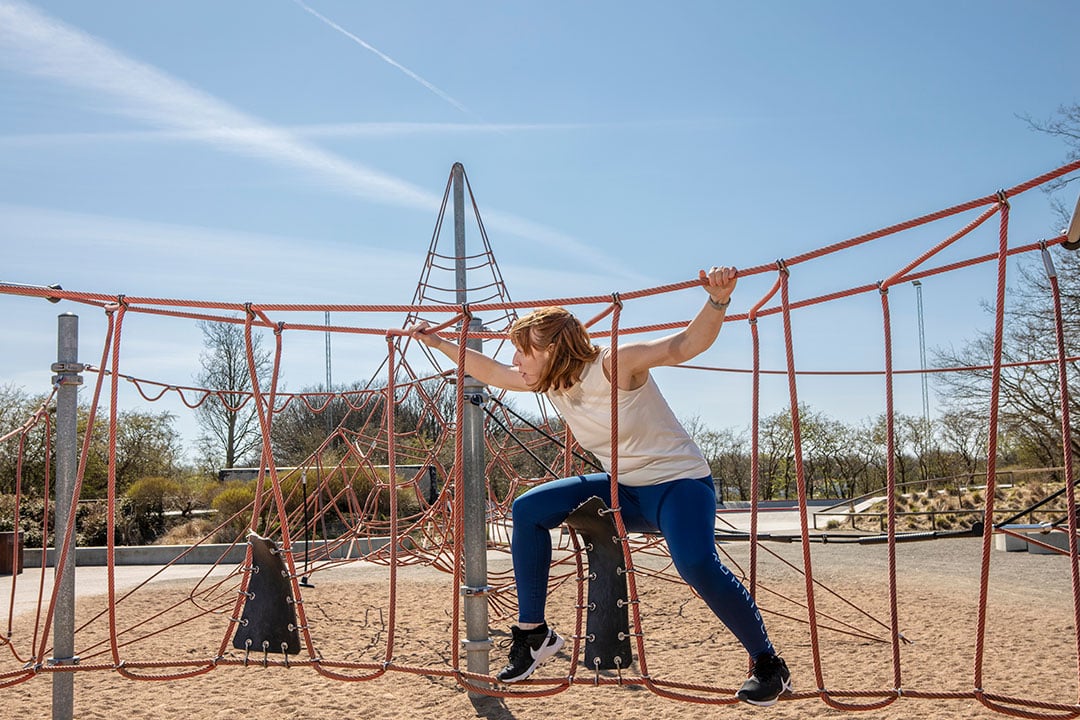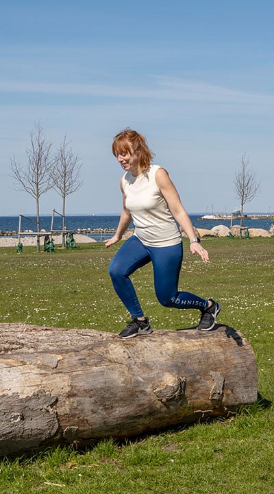Men så läste jag om tantparkour och började så smått utmana mig själv. Först trodde inte barnen att jag var klok när jag hoppade upp på stenmuren på väg till skolan för lite spontan balansgång – eller när jag plötsligt svingade mig över en bänk. Pinsamt! Men sedan insåg de också det roliga i att ha en mamma som hellre går bredvid stigen än på den och som plötsligt vill klättra i träd eller leka ”inte nudda mark”.