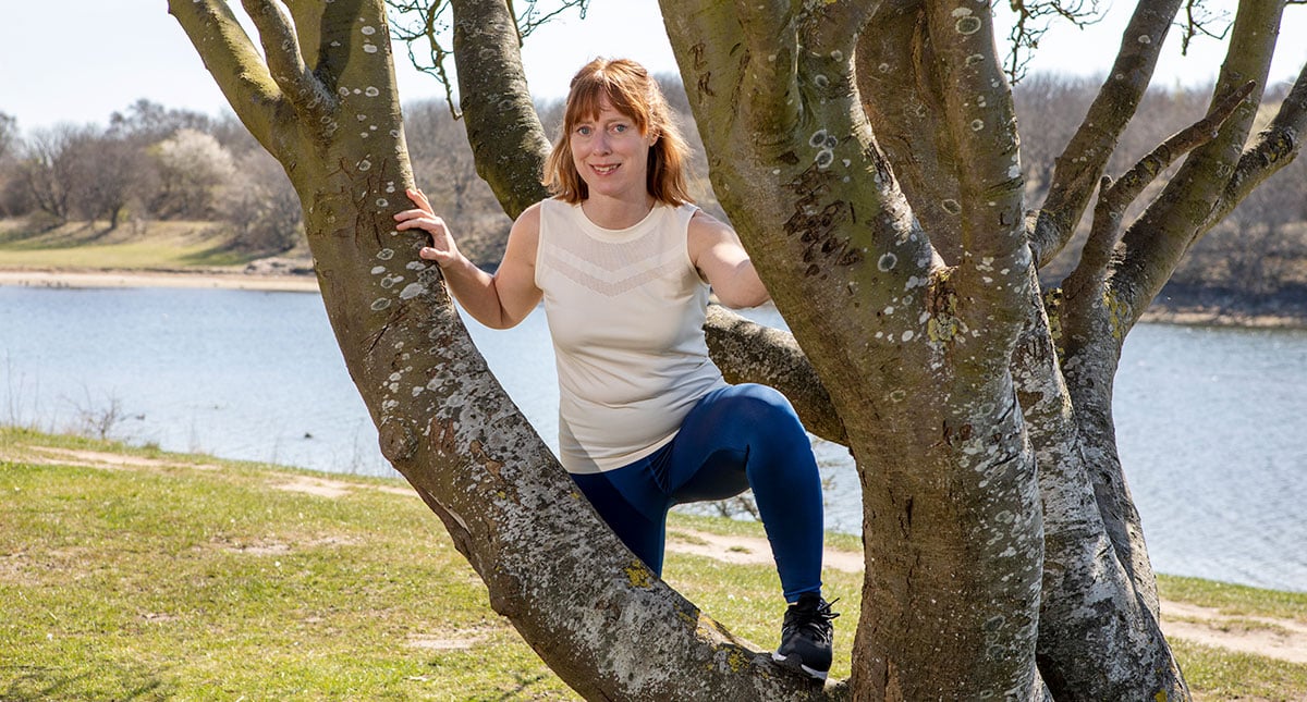 Men så läste jag om tantparkour och började så smått utmana mig själv. Först trodde inte barnen att jag var klok när jag hoppade upp på stenmuren på väg till skolan för lite spontan balansgång – eller när jag plötsligt svingade mig över en bänk. Pinsamt! Men sedan insåg de också det roliga i att ha en mamma som hellre går bredvid stigen än på den och som plötsligt vill klättra i träd eller leka ”inte nudda mark”.