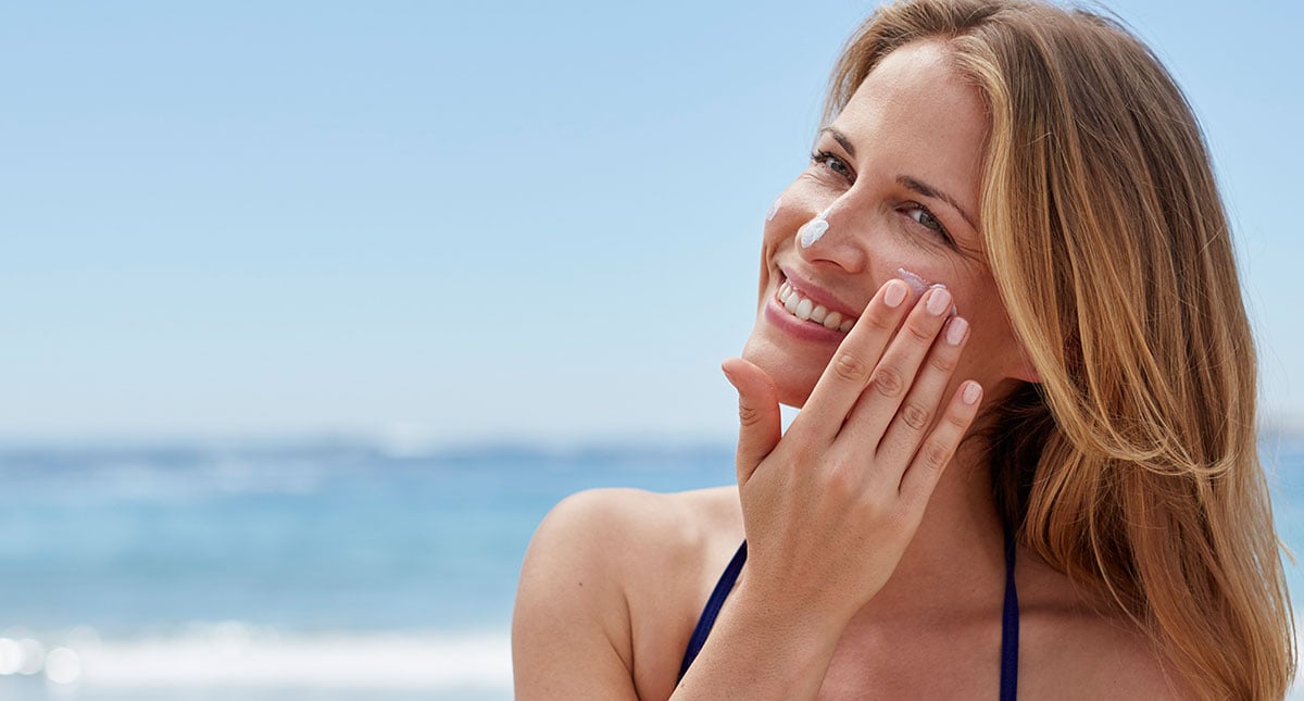 De flesta tar alldeles för lite solskydd, applicera alltid rikligt och var extra noga med utsatta områden som näsa, ögonlock, läppar och dekolletage. Smörj sedan in dig varannan timme och efter badet, oavsett SPF och om solskyddet är vattenresistent.