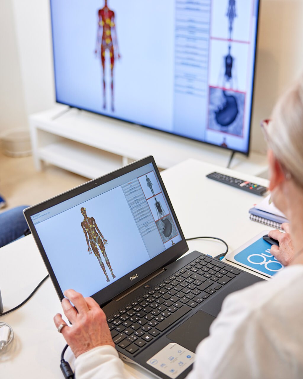 — Den hittar inte specifika sjukdomar. Däremot hittar den svagheter och problem i cellerna och gör någonting åt dem, nämligen stärker och läker organområdet eller cellerna. Och den kan se allergier och överkänslighet mot livsmedel, toxiner och parasiter. Många har intoleranser mot födoämnen som påverkar hälsan negativt och sänker ens näringsupptag.