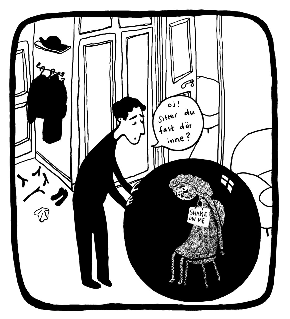 — I teorin säger nog många att ”jag ska inte känna skam”, men det ligger i vår natur att vilja gömma oss när vi inte känner igen oss själva. Det är en blandning av samhällets normer och hur vi ser på oss själva, funderar Elsa Janni.