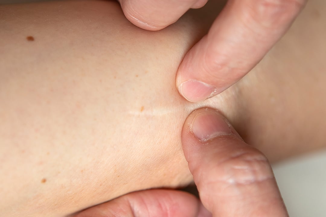 En mjuk behandlingsmetod – inga smärtsamma ingrepp utan bara små, specialiserade grepp med fingertopparna över ärrvävnaden.