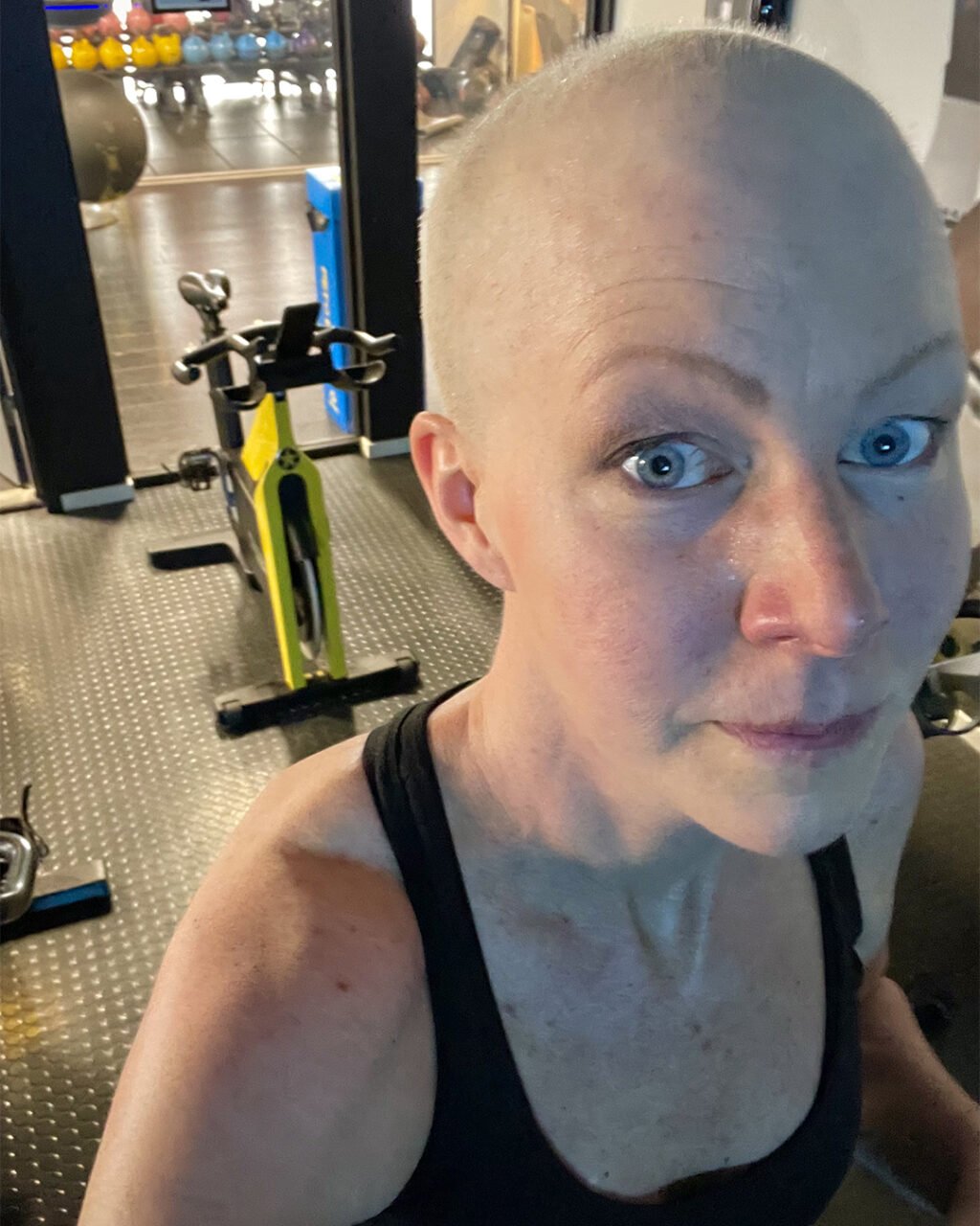 — Redan i november när jag fick diagnosen började jag mentalt ställa in mig på att jag kanske skulle tappa håret. När det sedan blev beslutat att jag skulle genomgå cytostatikabehandling klippte jag håret i en kort frisyr. Därigenom blev det inte så dramatiskt när håret väl började falla. Det kändes på något sätt inte som att det var mitt hår som försvann.