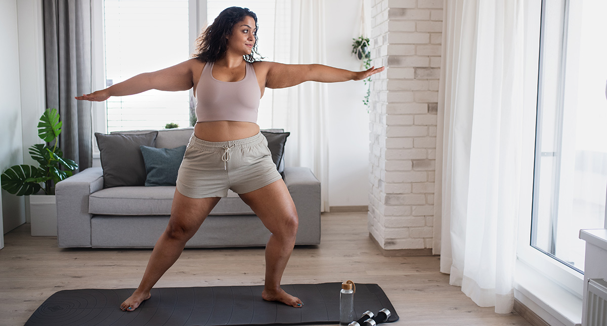 Tips: Pilates kan du även träna hemma i vardagsrummet med hjälp av en dvd.