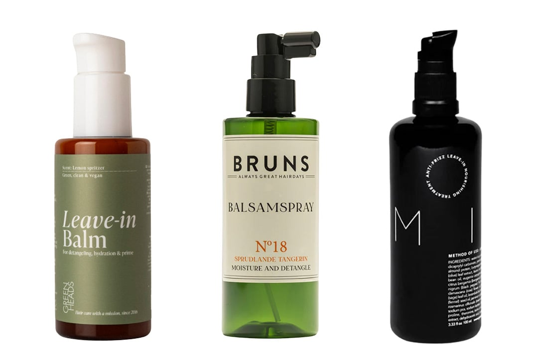En riktigt bra leave-in-produkt är ett måste. Green Heads Leave-In Balm, 329 kr, reder ut, återfuktar och har ett lätt värmeskydd. Fungerar också som en primer för håret och gör det starkare på lång sikt. Några andra favoriter är Bruns Balsamspray, 155 kr/200 ml, och Reveries Milk, 599 kr/100 ml, greenheads.se