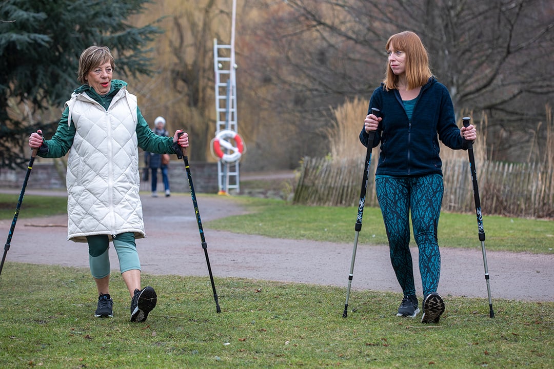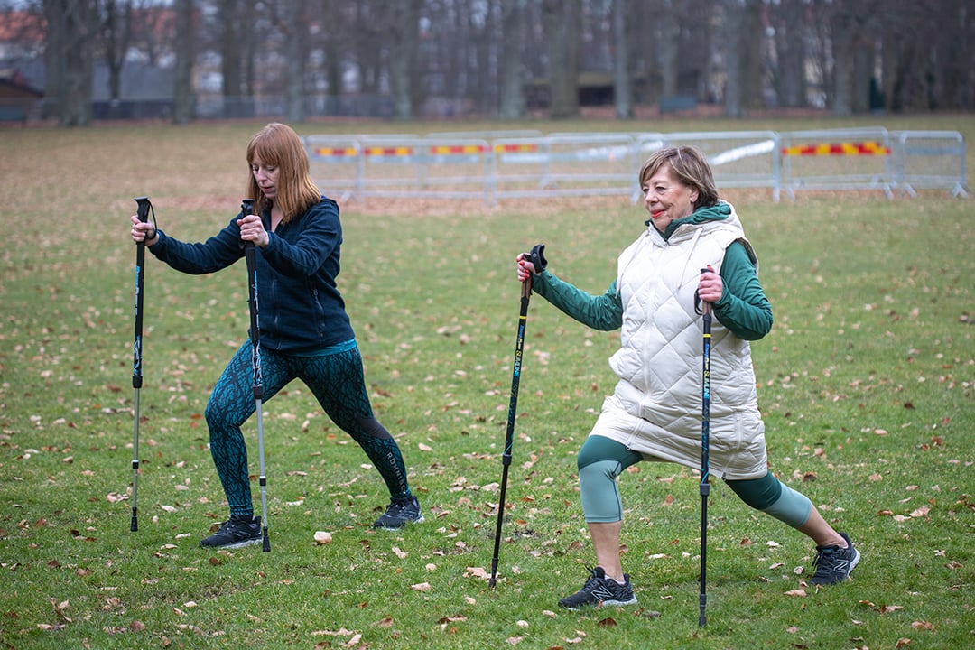Under timmen vi går får jag dock hela tiden påminna mig om att ”stava rätt”; det är lätt att staven blir en bekväm käpp i stället för ett effektivt motionsverktyg, särskilt om man går och pratar med någon samtidigt.