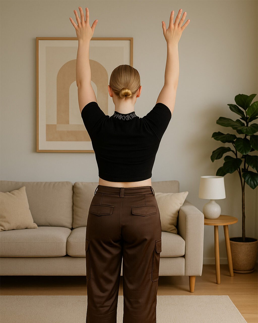 När du sträcker armarna över huvudet skapas en liten töjning i huden över armhålan, där det finns en koncentration av lymfnoder. Detta ger en stimulans av lymfnoderna, och genom att lyfta och sänka armarna får du en pumpeffekt som hjälper lymfvätskan att röra sig framåt i systemet.