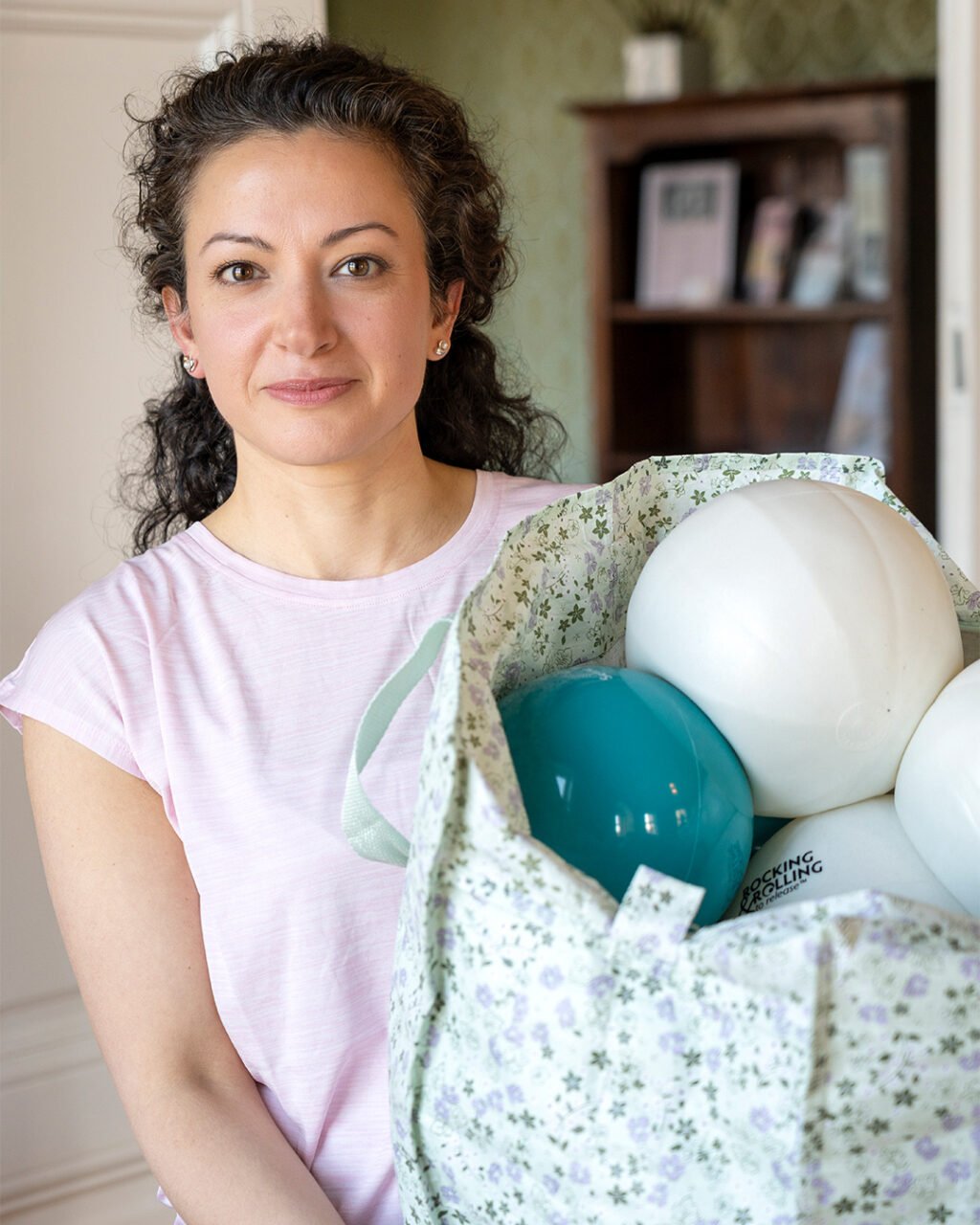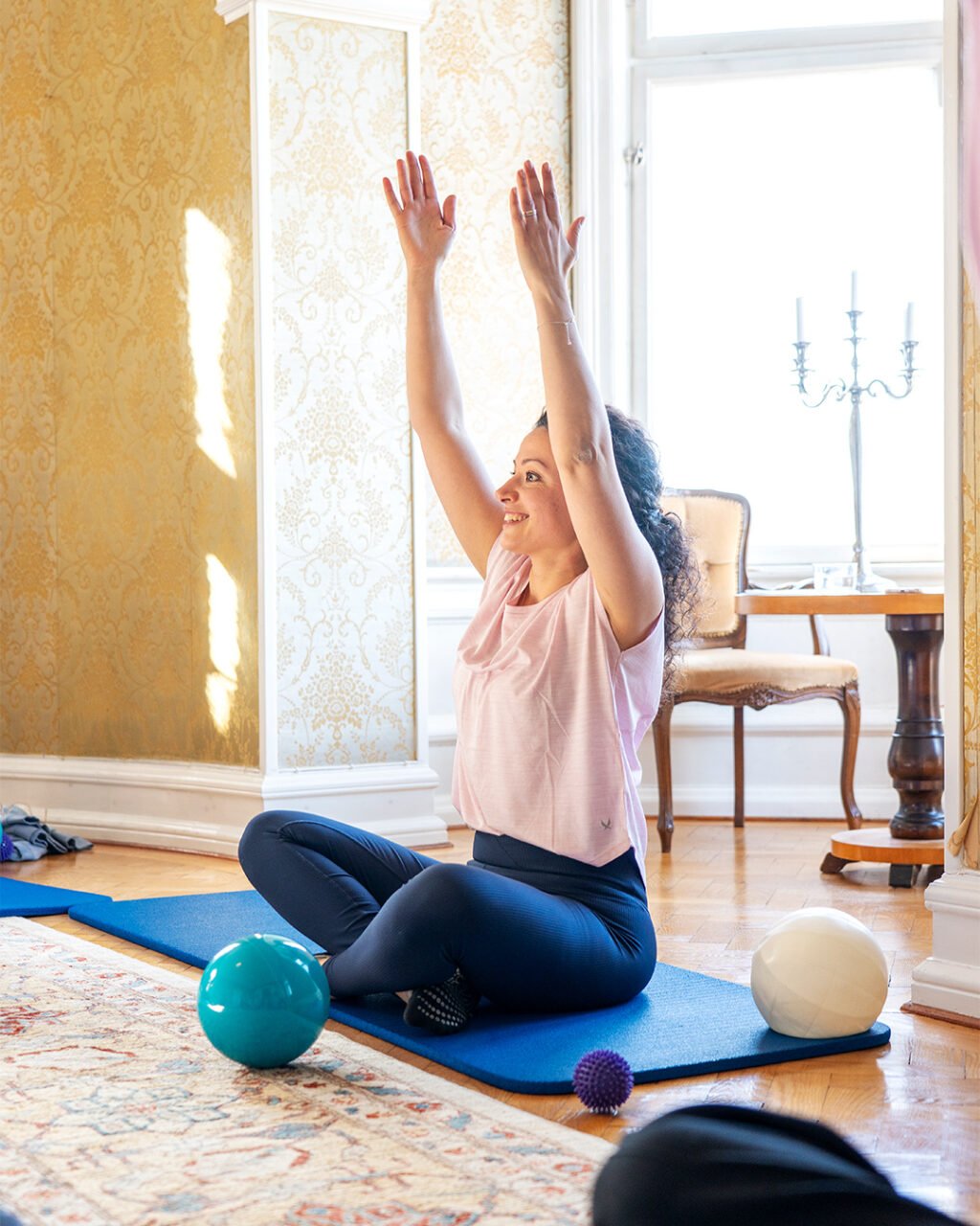Det är lördag eftermiddag och i Movement Studio i Malmö är det workshop i bindvävsmassage med boll. Pamela Nasr, som är pilatesinstruktör, har placerat ut yogamattor och tre bollar till var och en. Totalt består gruppen av nio kvinnor. Pamela inleder med att berätta om bollarna.