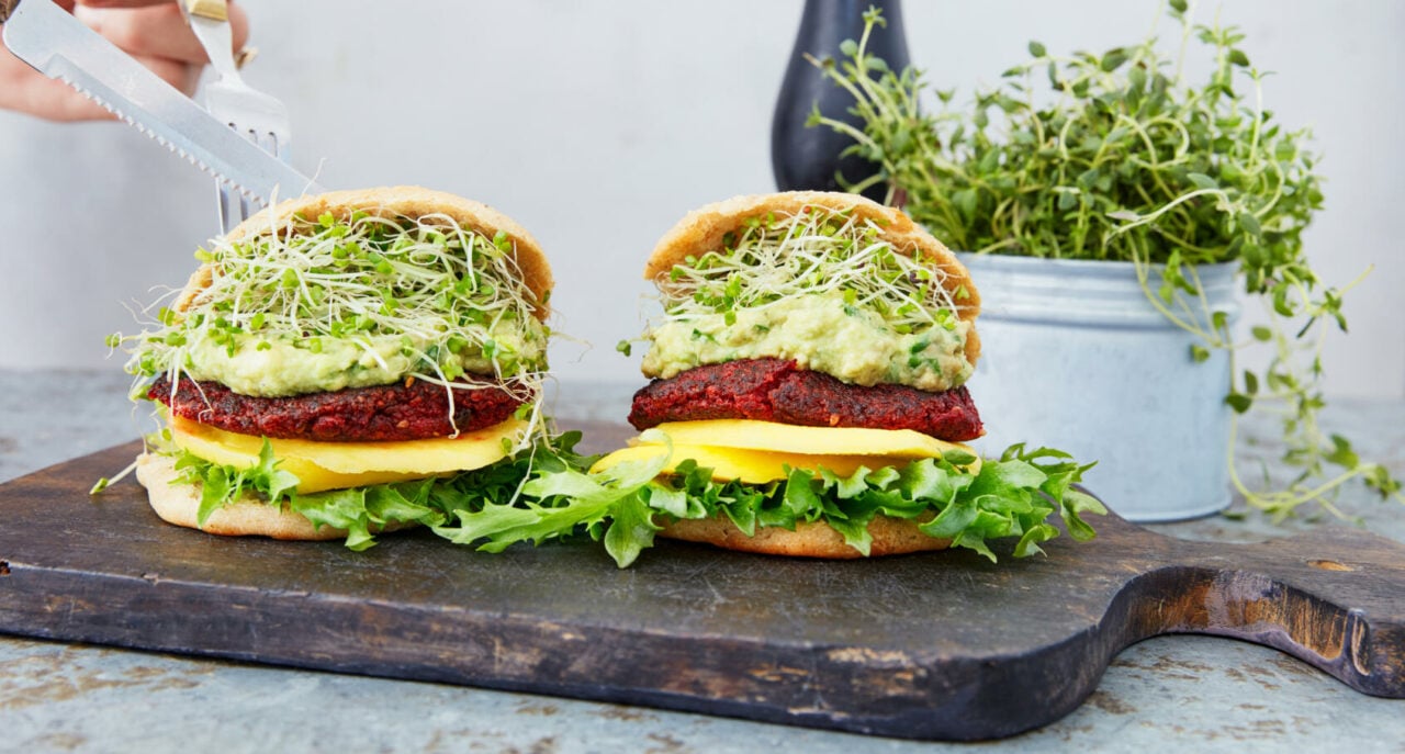 Saftiga rödbetsburgare med fetaost och hembakat hamburgerbröd