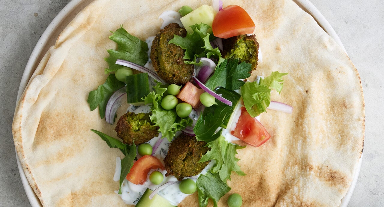 Hemgjord falafel med gröna ärtor