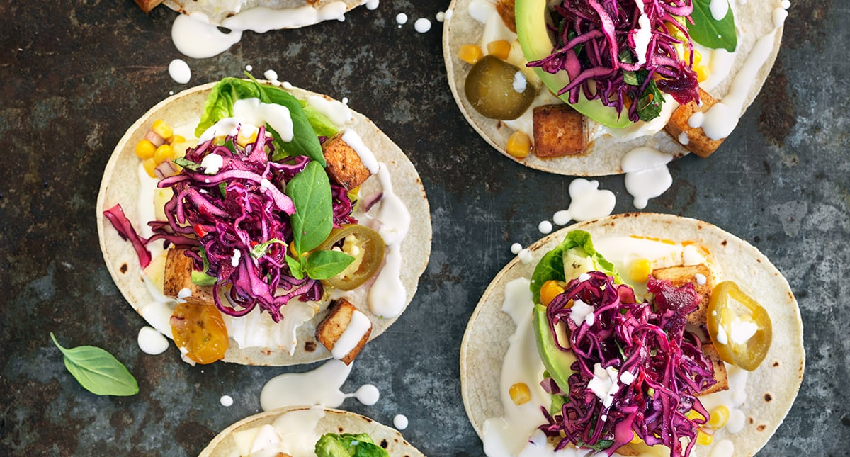 Tacos med tofu och krispig rödkålsslaw – perfekt fredagmys
