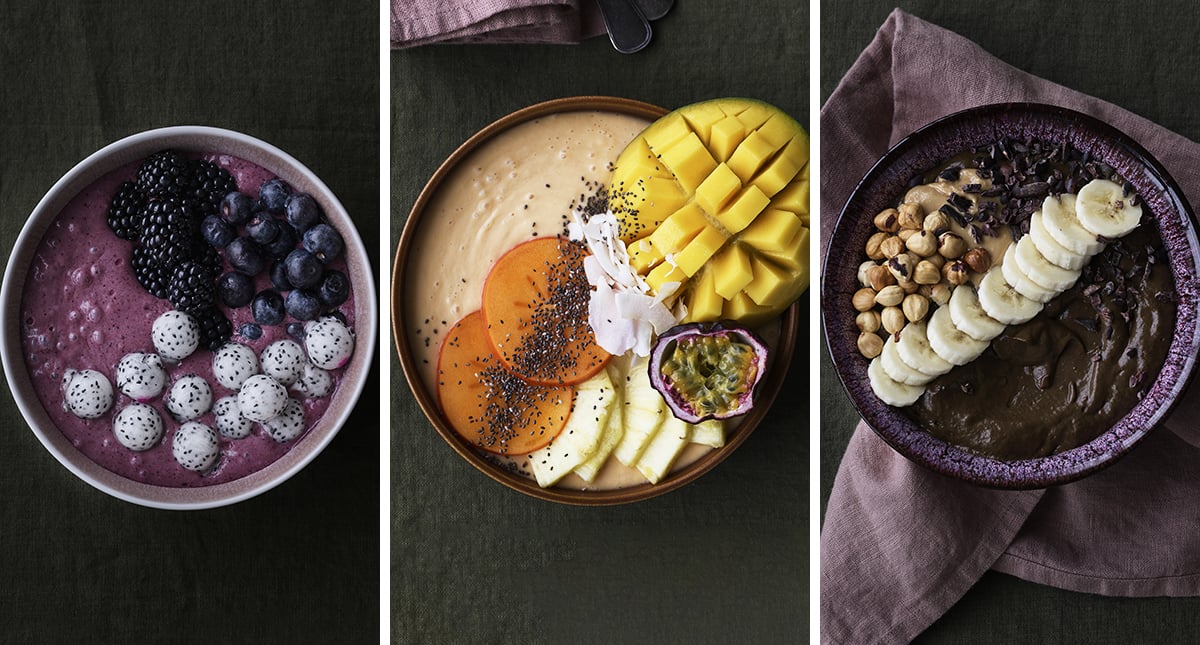 Läckra smoothiebowls med mycket frukt och grönt – 3 olika recept