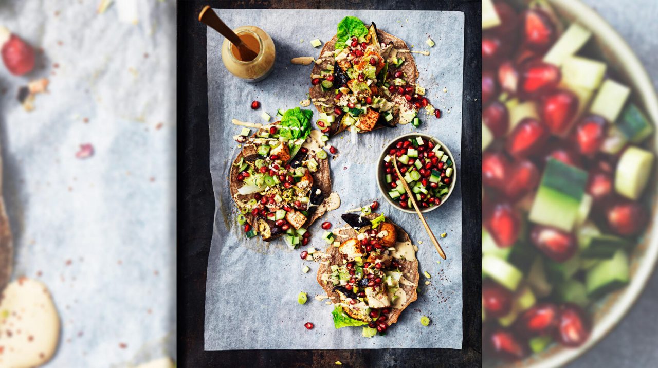 Marockansk tofu & aubergine på flatbread