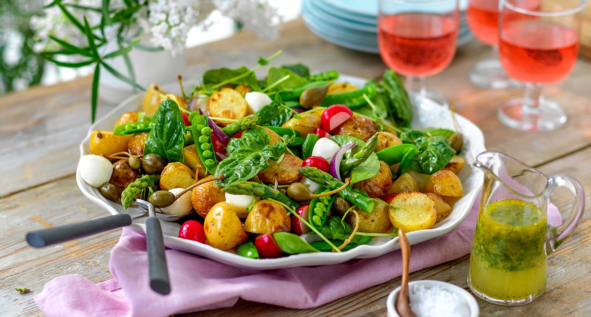 Vårfräscha primörer: Potatissallad med sparris och mozzarella
