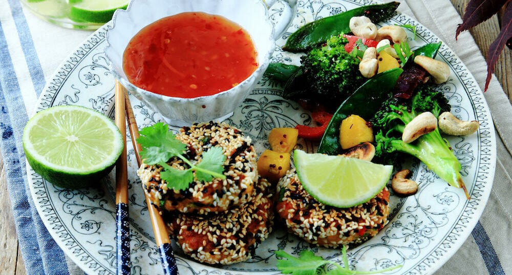 Asiatiska sötpotatisbiffar med wokade grönsaker – Färgsprakande vegomat